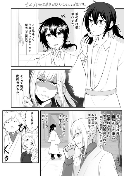 文房具を擬人化したキャラクターたちのお話を描いています。